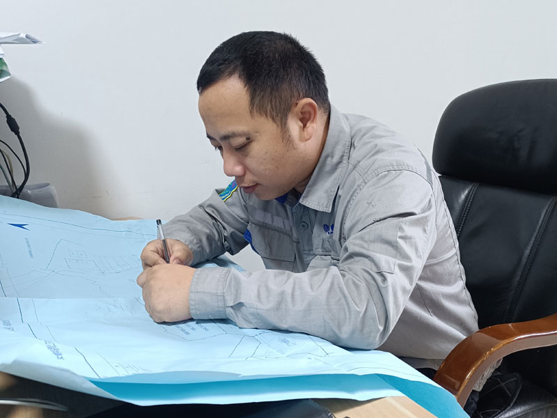 機關黨支部黨員、設備工程部三級干部許真正在認真核對工程施工圖紙。施工圖紙是工程建設的基礎,是編制工程施工計劃、材料采購計劃、勞動力組織計劃等的依據(jù),圖紙審核是工程項目的作業(yè)指導書,細致的核對能有效避免工程偏差,是優(yōu)質(zhì)工程建設的關鍵性工作。